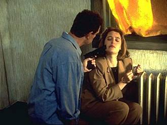 In Notwehr schießt Scully auf einen Bankräuber, während ein befreundeter Agent - Jack Willis, ihr ehemaliger Ausbilder und Freund - schwer verletzt wird. In der Notaufnahme beschließt man, den Agenten wiederzubeleben, doch der Körper des Bankräubers, Warren Dupre, reagiert synchron auf die Wiederbelebungsversuche. Willis kommt, nachdem er für einige Zeit klinisch tot war, wieder zu sich, als Dupre stirbt. Willis erwacht, aber mit dem Bewußtsein Dupres. Er geht zum Leichenschauhaus, trennt Dupres Finger ab, um seinen Ehering mitzunehmen, und verschwindet. Eine Tätowierung, die vorher auf Dupres Unterarm war, erscheint auf seinem eigenen. Der Agent hatte Dupre, der zusammen mit seiner Komplizin und Ehefrau Lula sieben Menschen bei Raubüberfällen getötet hat, schon seit einem Jahr verfolgt. Angesichts des merkwürdigen Verhaltens von Willis bemerkt Mulder: "Zwei Männer sind zur gleichen Zeit gestorben, Scully. Ein Mann ist zurückgekommen. Die Frage ist, welcher von beiden?" Willis/Dupre ist sicher, daß Lulas Bruder ihn verraten hat und tötet ihn, dannach taucht er am Tatort auf. Um seine Theorie zu überprüfen, läßt ihn Mulder eine Geburtstagkarte für Scully unterschreiben, obwohl Willis wissen müßte, daß ihr Geburtstag erst Monate später liegt. Willis behauptet, er habe Lula gefunden, und Scully begleitet ihn. Sie stellen die Frau, aber Willis überwältigt Scully und erzählt Lula Details aus ihrem Leben, die beweisen, daß er wirklich Dupre ist. Als Scully versucht, Willis' Gedächtnis aufzufrischen, erklärt ihr Dupre verächtlich: "Du hast mich niedergeschossen - und dann hast du mich sterben lassen". Willis bricht zusammen, denn er ist Diabetiker und braucht Insulin. Lula verweigert es ihm und gibt zu, daß sie ihn verraten hat, um das Geld für sich zu behalten. Sie meldet sich beim FBI und verlangt eine Million Dollar Lösegeld für Scully. Hintergrundgeräusche, die das FBI aus dem Telefongespräch isoliert, führen die Agenten zu dem Ort, an dem Scully gefangen gehalten wird. Willis täuscht seinen Tod vor, und es gelingt ihm, Lula die Waffe zu entreißen und sie zu erschießen. Dann stirbt er - und Dupres Tätowierung verschwindet. Scully bemerkt, das Willis' Uhr genau zu dem Zeitpunkt stehengeblieben ist, als sein Herz im Krankenhaus aufhörte zu schlagen. Sie ist sich nicht ganz sicher, was das bedeuten könnte. "Es bedeutet", sagt Mulder teilnahmsvoll, "was immer Sie möchten, daß es für Sie bedeute![]() |