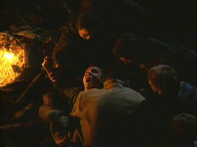 Ein Mithäftling erzählt Mulder, daß sie alle mit dem "Schwarzen Krebs" infiziert wären - eine Flucht sei sinnlos. In Washington - Dr. Sacks hat den Angriff der Würmer überlebt, liegt jedoch im Koma. Der ehemalige KGB-Killer Vassily Peskow begibt sich zu einer Farm, wo er den Well-Manicured Man und dessen Leibärztin trifft, die bekannte Virologin Dr. Bonita Chung-Sayre. Tunguska: Mulder gelingt es zu fliehen und Krycek in seine Gewalt zu bringen, der jedoch wieder fliehen kann und auf eine Gruppe einarmiger Männer stößt, denen gegenüber er sich als geflohener Sträfling ausgibt. Mulder trifft auf eine Familie, die ihm erklärt, daß es nur eine Möglichkeit gibt, sich vor dem Tod durch den "Schwarzen Krebs" zu retten: die Amputation des linken Armes. Pech für Krycek, dessen Retter ihm nun den Arm amputieren... In der Zwischenzeit bringt Peskow Dr. Sacks um . Die Agenten stoßen auf ein Pflegeheim in Boca Raton, Honda, in dem Dr. Chung-Sayre ähnliche Experimente unternommen hat, wie sie auch in dem sibirischen Straflager durchgeführt wurden. Doch die Agenten kommen zu spät: Peskow hat bereits alle Patienten umgebracht - aus den Leichen kriechen die schwarzen Würmer. Die Agenten erfahren, daß Krycek noch ein Gesteinsfragment besitzt, daß er in Terma, North Dakota, versteckt hat. Doch wieder kommt Peskow ihnen zuvor und vernichtet den Beweis... In St. Petersburg: Peskow kehrt heim und wird von Krycek erwartet, der nun eine Armprothese trägt. Krycek lobt ihn für seine gute Arbeit.![]() |